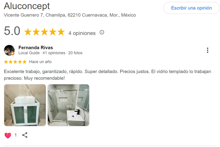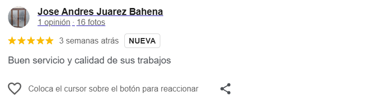 "Excelente trabajo, garantizado, rápido. Super detallado. Precios justos. El vidrio templado lo trabajan precioso. ¡Muy recomendable!"